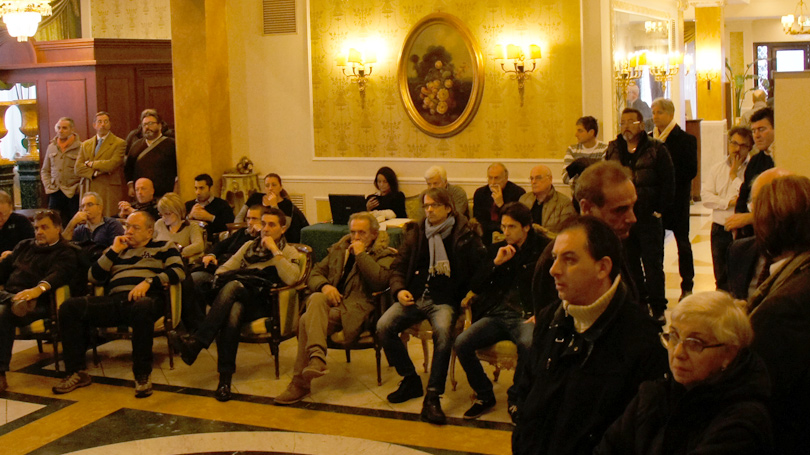 Alle 9:30, in anticipo di 15 minuti dall'inizio della registrazione, una quarantina di persone sono già in coda per aggiudicarsi i posti a sedere della sala principale. Per poter permettere a tutti di seguire gli interventi erano stati allestiti tre schermi. Alla fine le presenze complessive sono di 600 persone così distribuite: 400 nella sala Roma (con molti in piedi), 150 nella sala Madrid e 50 nell'atrio.